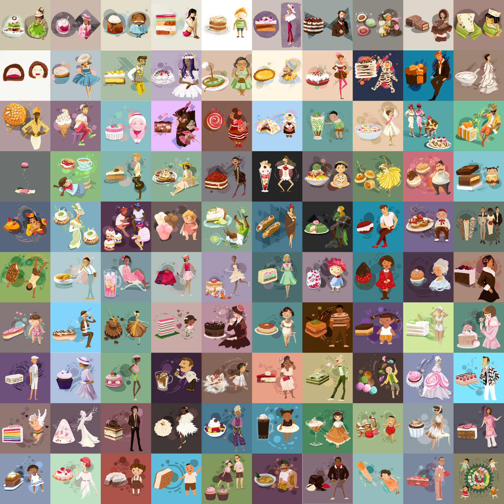 Every day from April 6th, I drew an illustration of a dessert, and how it's reimagined as a person. It's part of the 100 day instagram-based initiative as started by Elle Luna (The Great Discontent). Everyone who participates pick one thing to do for 100 days. I decided to draw sweet treats and I thought it would be fun to reimagine them as people. There is a story behind each picture, some longer than others, but it's a bit much to put it all here. Just not the right forum for it, but if you want to know more, and to follow this as it happens, head to my instagram account here.